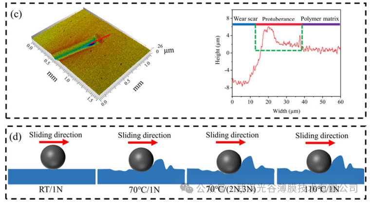 根據(jù)摩擦形成的軌跡,測(cè)量不同溫度下的耐磨性能